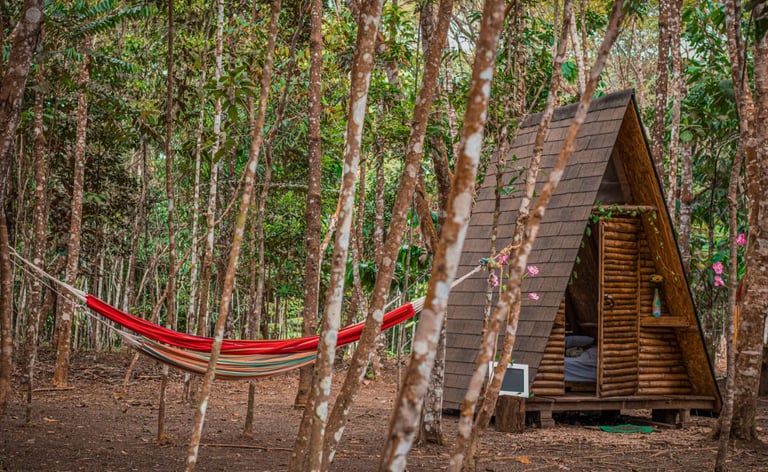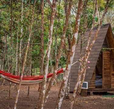 Eco alojamiento en glamping tipo casa alpina, disfrutando de un momento de naturaleza y tranquilidad.